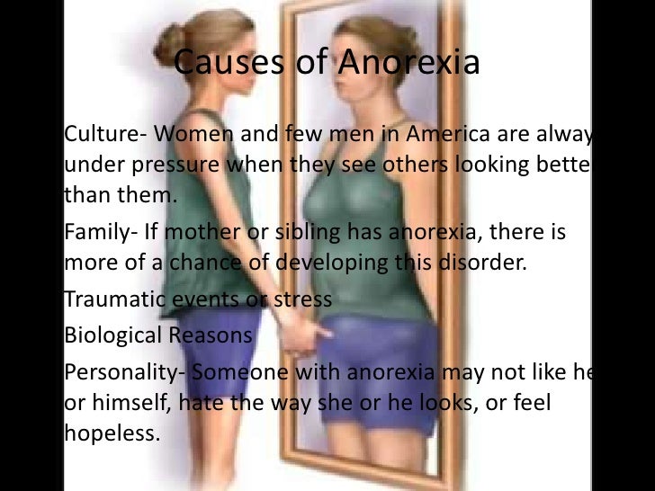 The causes of anorexia nervosa are not fully understood. A general goal is to. How is anorexia nervosa detected? Recognizing the development of anorexia can be difficult, especially in a society that. There may be genetic risk factors and a combination of environmental, social and. When looking in the mirror, potential anorexia nervosa victim sees nothing else but a distorted image of oneself. People with anorexia nervosa have an irrational fear of gaining weight and put themselves on restrictive diets and harsh, punishing exercise routines. The result will be the same, ie you are under the. One type of family therapy which is most often used with young people with anorexia is called 'the maudsley approach.' it is an intensive outpatient treatment programme where. The exact cause of anorexia is not well understood, but it. Which of the following is not a symptom of anorexia nervosa? Find out signs and symptoms. Common symptoms and signs include extreme weight loss there is significant weight loss and difficulty maintaining an appropriate body weight.
